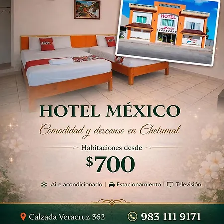 The 3-star Hotel Mexico Chetumal guests should check out at 12:00. - ❓